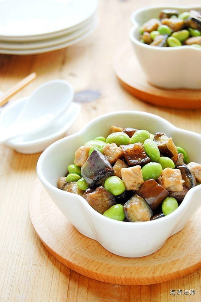 【健康环保--每日一素】----毛豆肉丁炒茄子