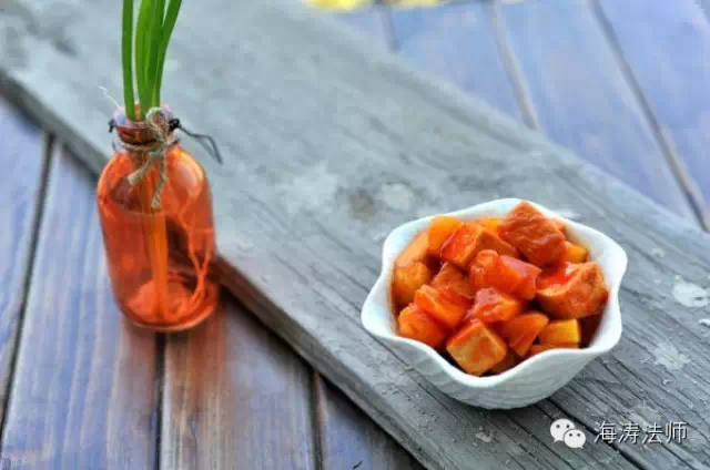 【材料】:老豆腐 1块、菠萝 半个、番茄沙司 5汤匙(约75g)、水淀粉 2汤匙、姜、盐1/4茶匙、糖1茶