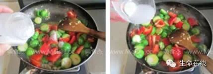 这是道简单的快炒菜,炒制之前须将甘蓝小包菜对开成两半,能方便其尽快成熟;炒菜时先爆香姜片,再加入甘蓝小包菜翻炒,变色后加入彩椒,加入少许水淀粉勾薄芡,最后加入盐调味即可。