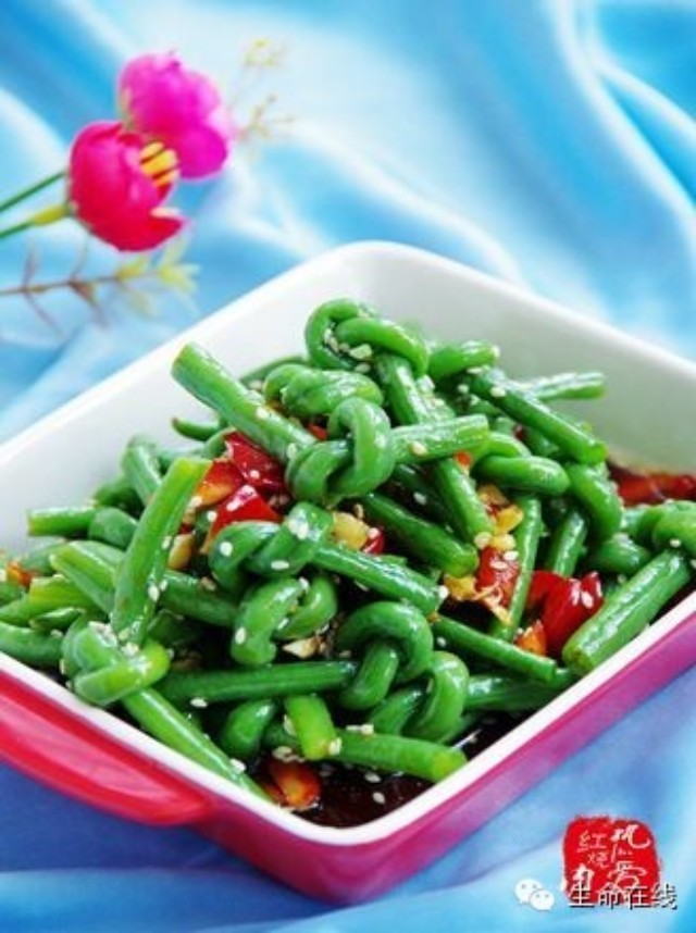 豇豆一定买嫩的,别里面都有豆子那种就不好打结了。