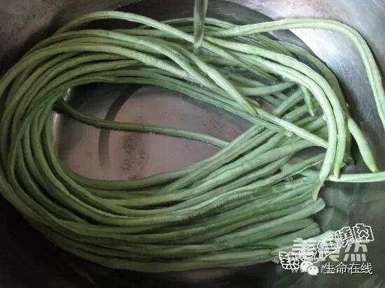 然后放在开水里焯烫2分钟最后将剪子也放进去烫一下消毒,最好用厨房专用的剪子,豇豆焯好以后马上拿出来过冷水