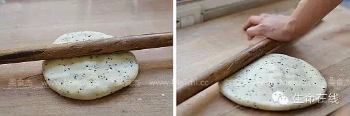 5.用擀面杖压成圆饼