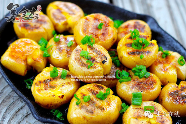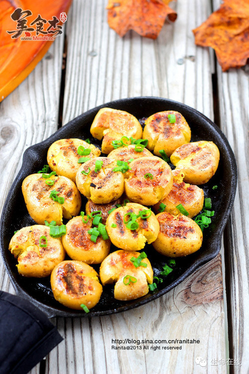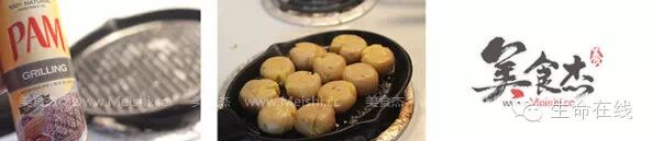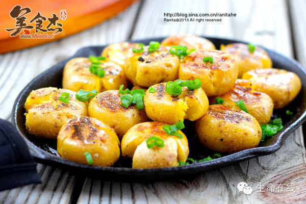 4.然后在预热好(中小火)的铁板上喷上一层植物油,然后开始煎土豆