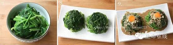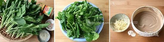 5.锅内放入适量的水烧开,下入菠菜,煮约半分钟