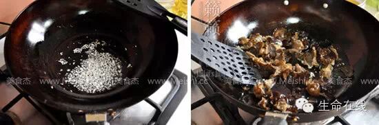 6.沿锅边淋入一圈汤稍焖,下鲜酱油、盐调味,蘑菇精快速翻炒均匀,撒姜末