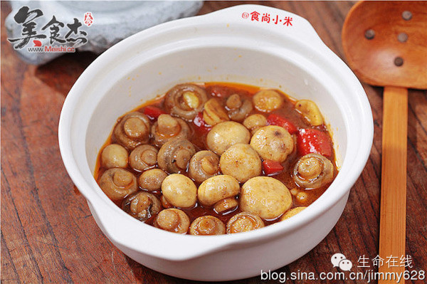 1.红椒切块、姜切片,口蘑洗净,做锅清水,水开后将蘑菇下锅,略微焯一下,也就是略煮1钟捞出控干待用