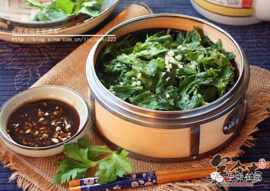 一定要将蒸锅内的水先烧开后再放入芹菜叶,蒸的时候要大火,时间不要太长,以免将菜叶蒸得太烂。