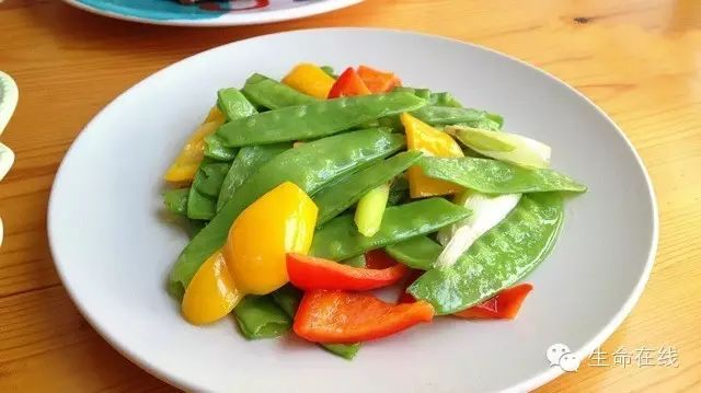 主料:荷兰豆、红椒、黄椒 辅料:盐、油、姜片、蔬菜鲜
