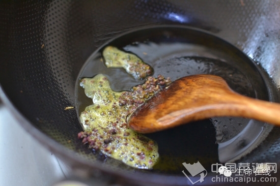 8.锅中再次到少许油,小火炒香花椒,小火煸炒出香味即可,如果为了吃的时候方便可以捞出花椒