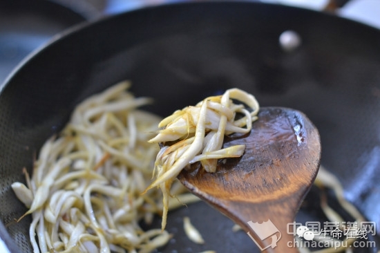 3.杏鲍菇用手撕成细丝,粗细根据个人喜好,喜欢有嚼头的就粗一点,撕出来的绝对要比刀切的好吃