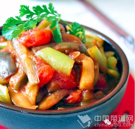 紫色长茄1支(大约300g),尖椒2个,西红柿1个