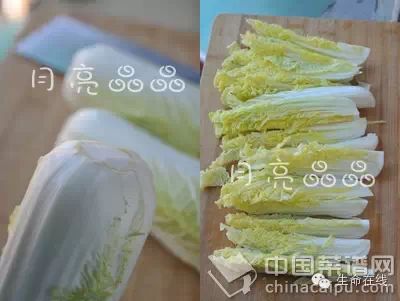 1. 娃娃菜整颗竖切成条,这样做出来形状好,不会烂烂的一团。
