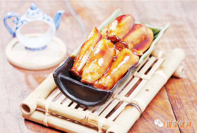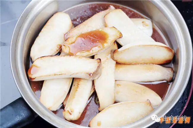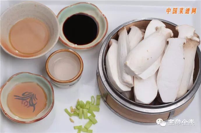 原料:杏鲍菇7根、照烧汁10克、酱油5克、白糖5克、一点点白水、姜3克