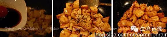 4、因为是干烧,所以一定要烧干水分,表面微焦,会有煎藕的独特香味;