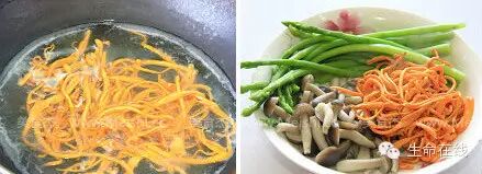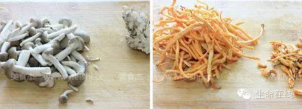 1.蟹味菇去菇头,虫草花捡去杂物