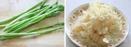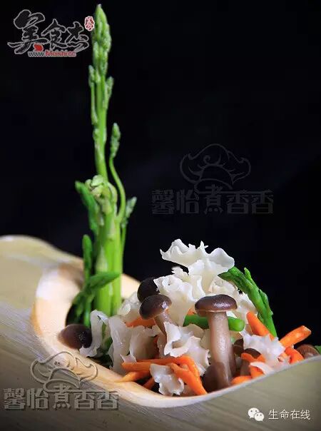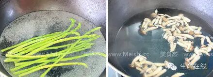 2.芦笋去掉老的部份,荷仙菇从盒里取出
