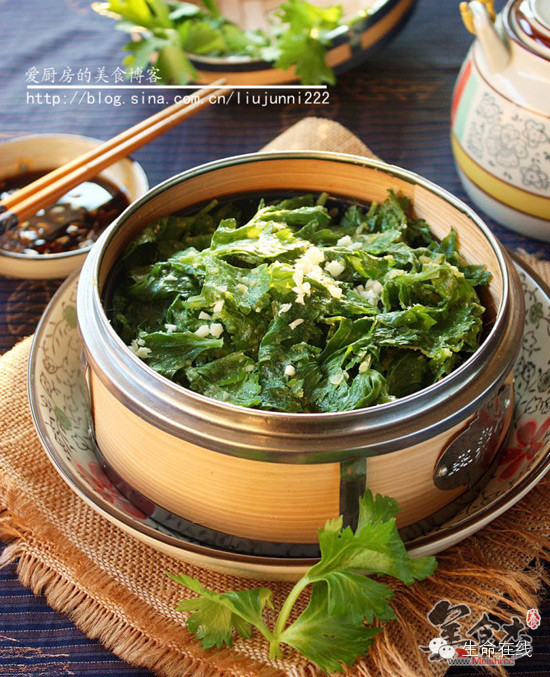 一定要将蒸锅内的水先烧开后再放入芹菜叶,蒸的时候要大火,时间不要太长,以免将菜叶蒸得太烂。