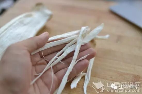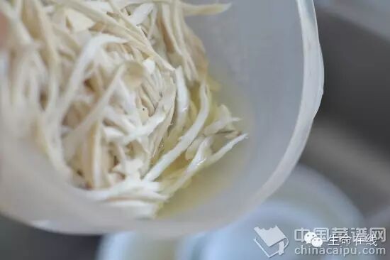 3.杏鲍菇用手撕成细丝,粗细根据个人喜好,喜欢有嚼头的就粗一点,撕出来的绝对要比刀切的好吃