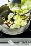 7 下包心菜翻炒至断生,下盐、蘑菇精调味起锅即可。