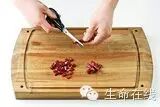 4 将辣椒切成小段,为了更好地保证辣椒的营养不流失,可以用厨房用剪将辣椒剪成段,去籽。