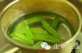 7 荷兰豆撕去老筋,放滚水中焯至断生