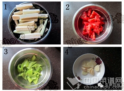 紫色长茄1支(大约300g),尖椒2个,西红柿1个