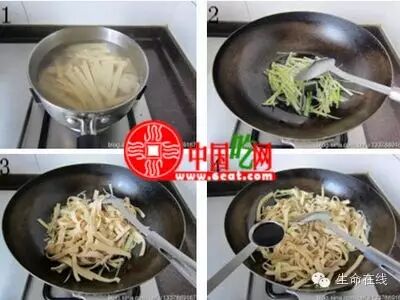 3、“辣”的程度是可以调节的:辣椒丝与姜一起、甚至先于姜丝煸炒,辣味最容易充分释放,菜品口感最辣;辣椒丝与豆腐皮一起入锅煸炒,次之;最后放辣椒丝