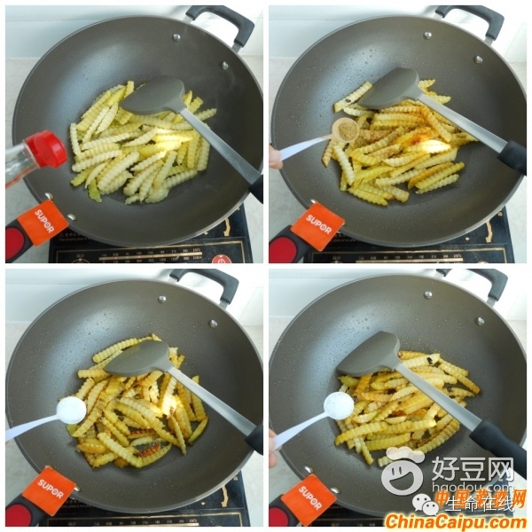 8 土豆成熟后,关火。放入味精,翻拌均匀。