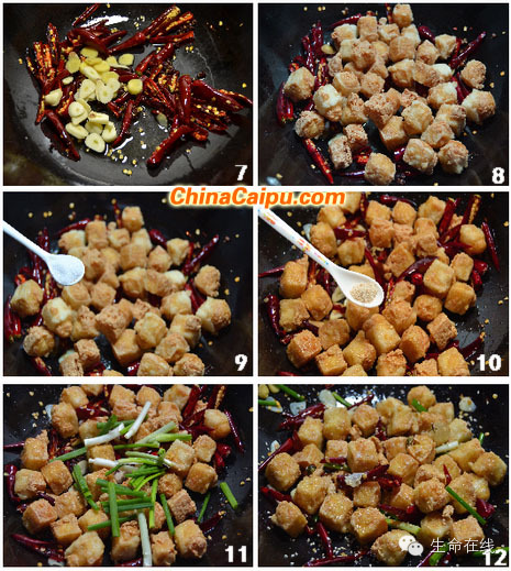 2、炸豆腐时,火不能太大,炸到金黄发硬后,会有香脆可口。